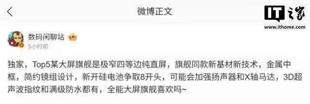 需要注意的是,这名博主曾在 1 月初的爆料中,提及了一款小米内置电池容量为 8000mAh 级别的新机,当时他声称某 TOP5 厂商的大屏旗舰机将搭载极窄四等边纯直屏。