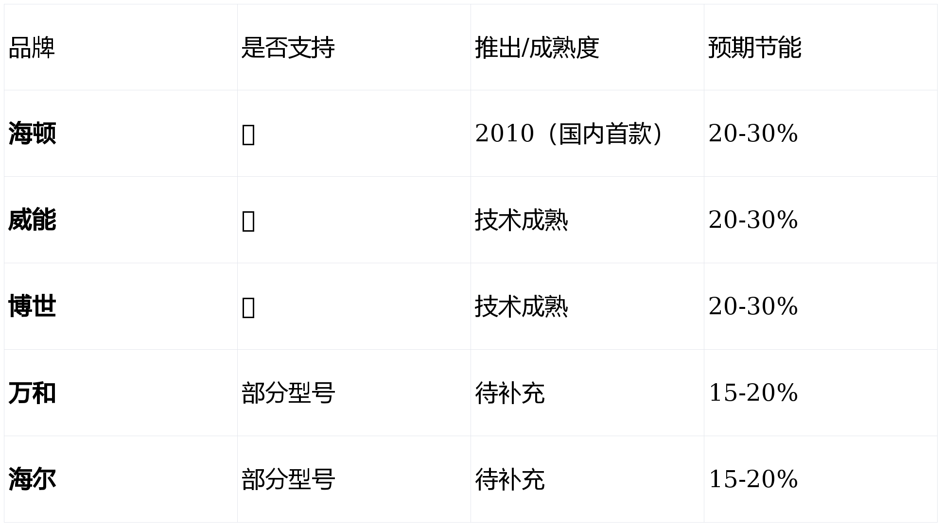 结论:海顿 / 威能 / 博世属于“变频成熟阵营”,基础节能能力更稳。