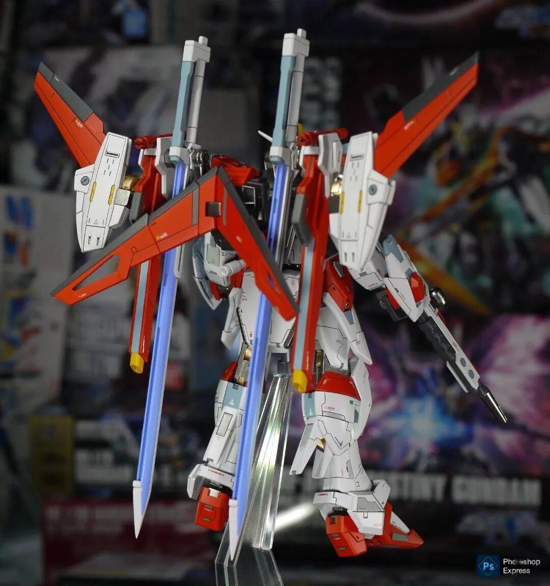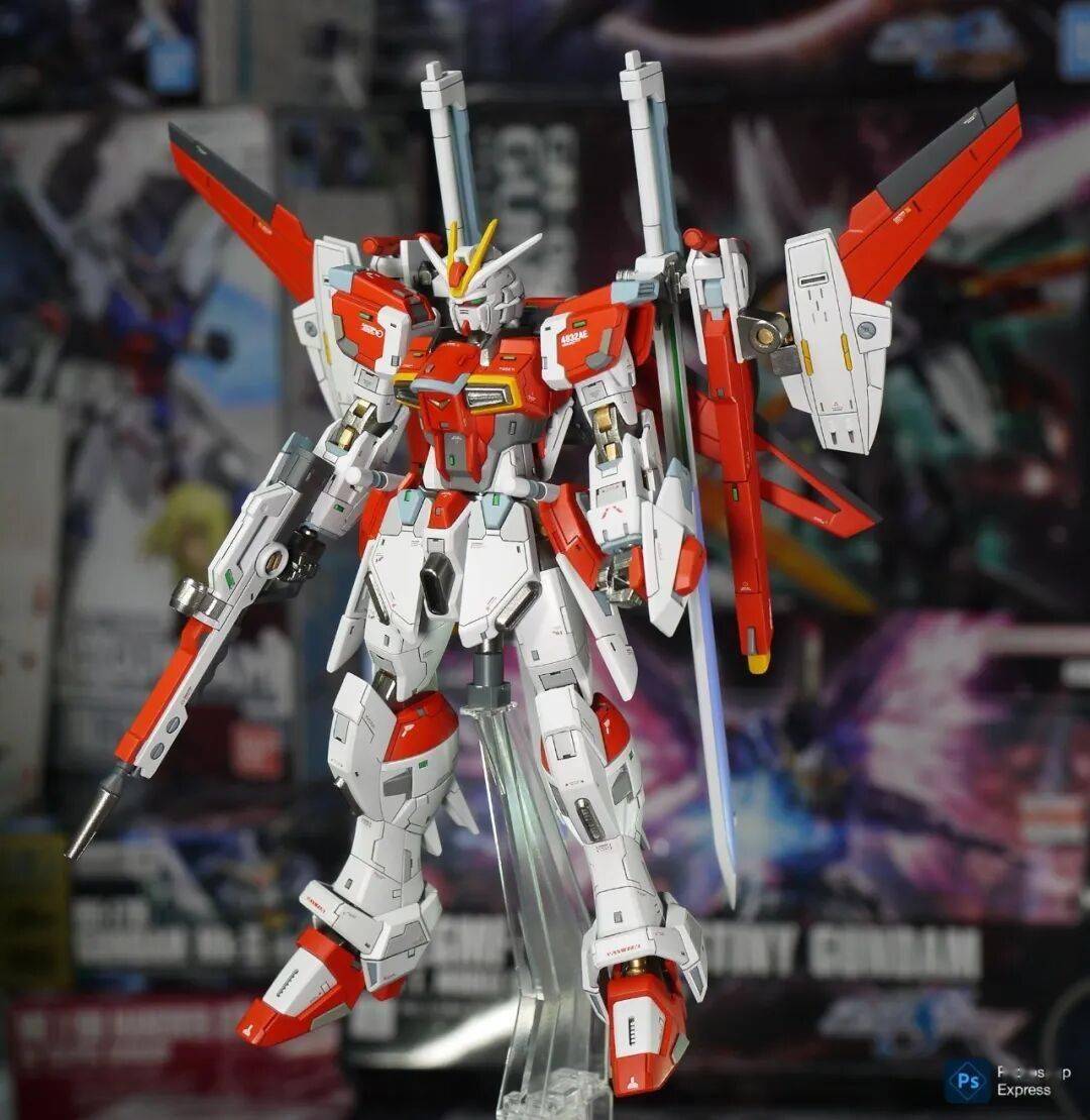 这台剑装脉冲可以说是集各机优势的强化型改造机体了,むちょん觉得原来的机体显得过于单薄,所以他不仅换掉了背包,而且更换了腿部和裙甲,并且给机体增加了更多的刻线细节和对应的分色。