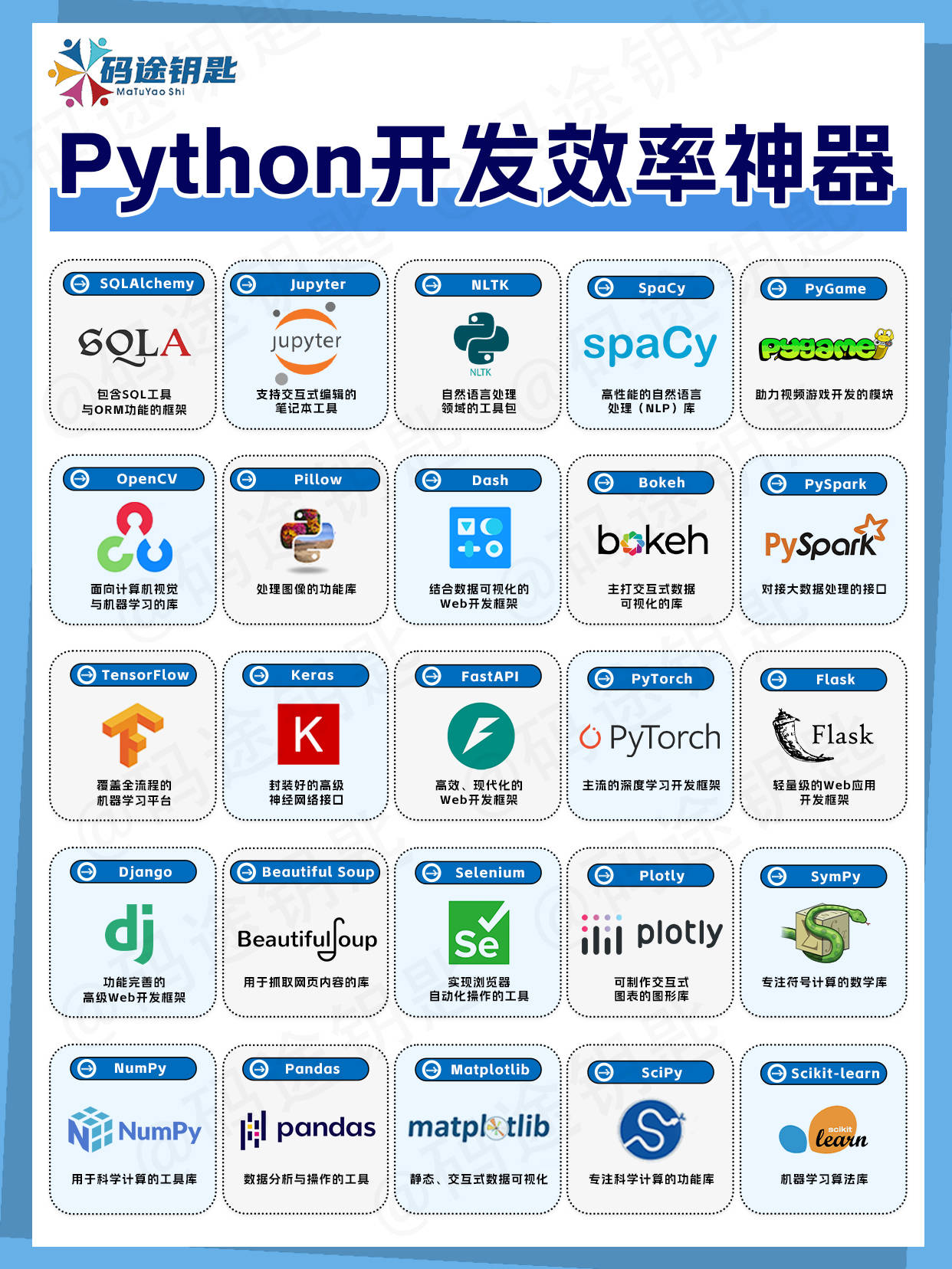 零基础小白也能看懂,25个库的功能一目了然从做数据分析到写小游戏,直接照着图选工具!