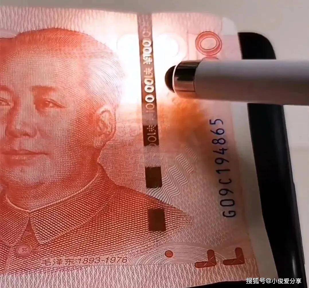 其实根本不用专门买验钞机,手机手电筒一开,立马变身简易验钞灯,效果一点不比专业设备差。
