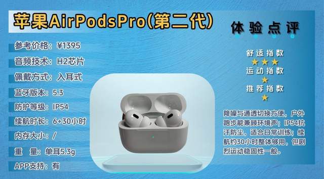 苹果AirPods Pro(第二代)主打高端日常佩戴体验,适合通勤、办公室以及轻度运动用户。强调智能降噪与空间音频,兼顾舒适度与便携性。