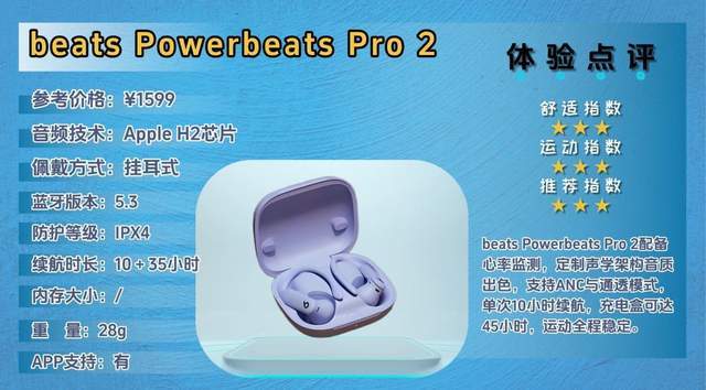 Beats Powerbeats Pro 2主打专业运动耳机,面向跑步、骑行和力量训练等高强度运动用户,兼顾日常使用。其设计强调稳固佩戴与运动数据监测,适合追求运动表现和音质的用户。