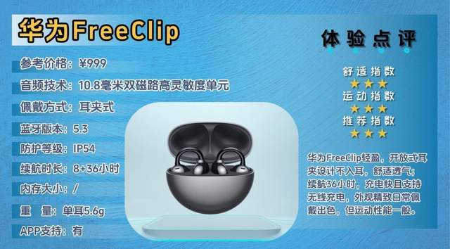 华为FreeClip主打精致小巧与品牌信赖感,偏向日常佩戴或轻运动使用,强调舒适和便携。