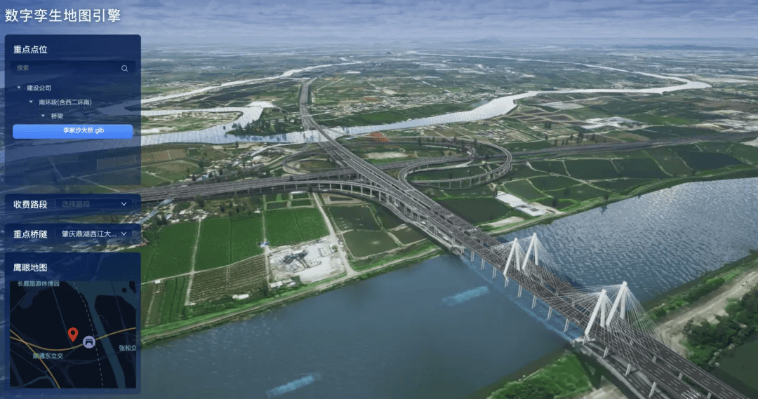 自项目启动以来,完成了广东省1.17万公里高速公路全域高精度地图数据采集,并对重点路段实施精细化三维建模,精度达到厘米级。打造了高精度地图引擎、数字孪生引擎、交通仿真引擎及开放服务平台,一体化支撑空间精准计算、全要素资产『数字化』管理及智慧应用敏捷开发。