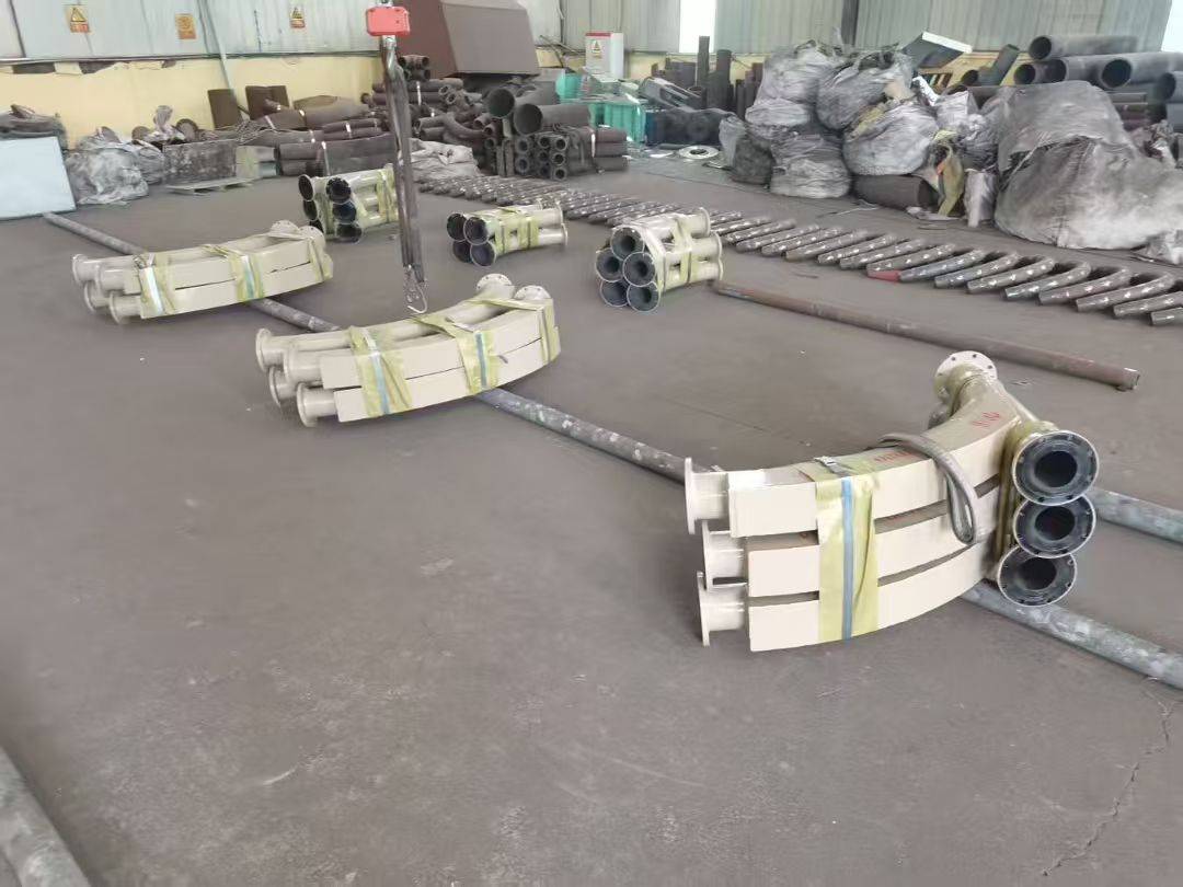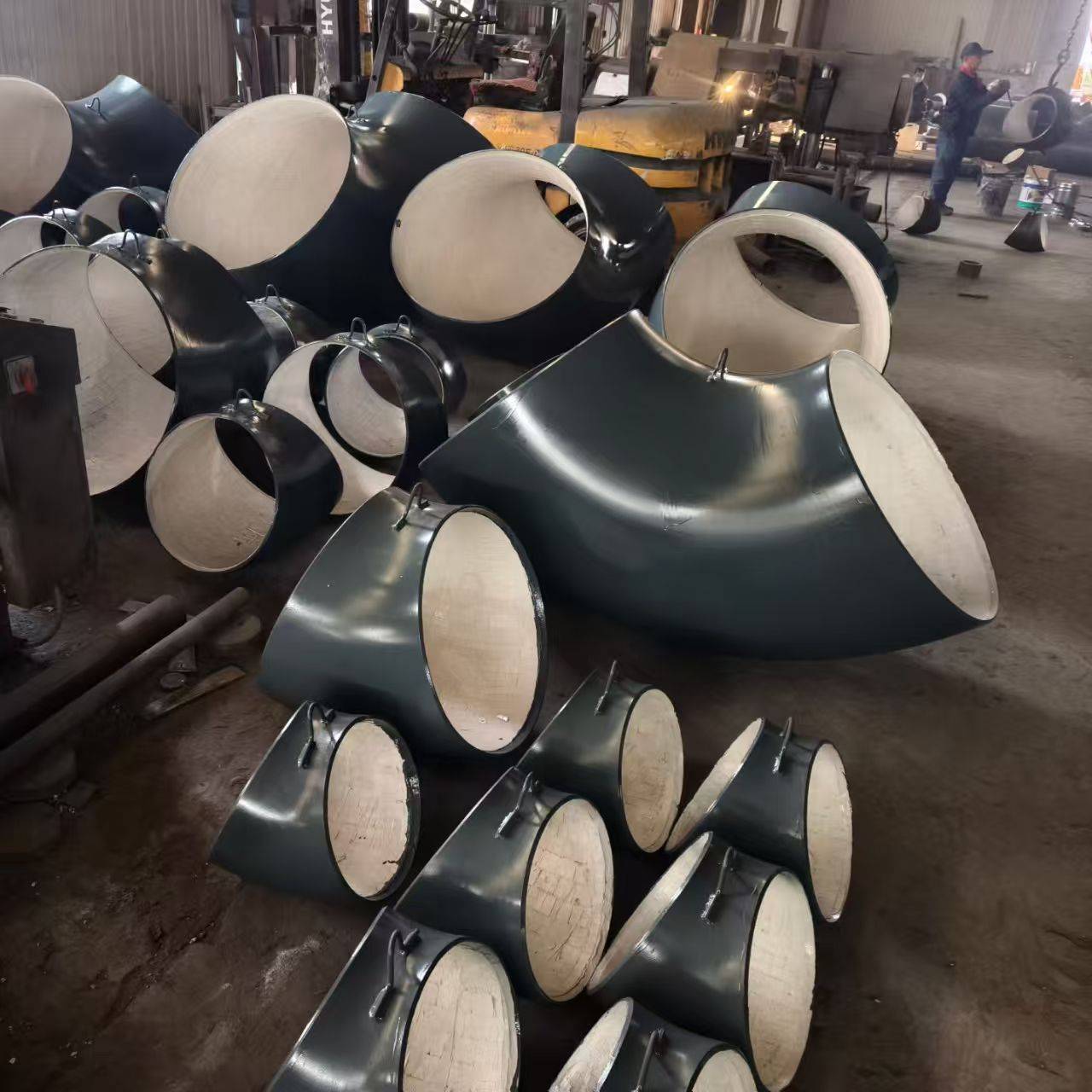 二、耐磨弯头的解决方案 针对不同介质腐蚀磨损的解决办法 1. 耐酸耐磨弯头:对于强酸性介质,采用内衬耐腐蚀陶瓷的耐磨弯头是理想选择。陶瓷材料如氧化铝陶瓷,具有极高的化学稳定性,能有效抵御酸性物质的腐蚀。同时,陶瓷的高硬度可以抵抗固体颗粒的冲刷磨损。此外,在弯头外层选用耐酸合金钢,提供结构支撑,增强整体强度。 2. 耐碱耐磨弯头:面对碱性介质,可选用特殊合金材质的耐磨弯头,如含有镍、钼等元素的合金。这些元素能在金属表面形成一层钝化膜,阻止碱性物质的进一步腐蚀。同时,通过优化合金成分和热处理工艺,提高弯头的耐磨性能,以应对可能存在的固体杂质磨损。 3. 抗冲刷耐磨弯头:针对含固体颗粒的流体,可采用高铬合金耐磨弯头。高铬合金中含有大量的碳化铬硬质相,硬度极高,能有效抵抗颗粒的冲刷。同时,通过离心浇铸等工艺,使合金成分分布均匀,提高弯头整体的耐磨性能。 解决特殊工况安装难题的措施 1. 定制化设计:针对空间受限环境,耐磨弯头厂家可根据现场实际空间尺寸和管道布局,进行定制化设计。采用紧凑式结构或特殊形状的弯头,如小半径弯头、异形弯头,确保在有限空间内顺利安装。同时,利用先进的计算机辅助设计(CAD)和模拟分析技术,提前验证安装的可行性和效果。 2. 特殊安装工艺与材料:在高温高压工况下,采用特殊的焊接工艺和耐高温密封材料。例如,使用氩弧焊等高质量焊接方法,确保焊缝质量,提高弯头的密封性和强度。同时,选用耐高温、耐高压的密封垫片,如金属缠绕垫片,保证在高温高压环境下不会出现泄漏。