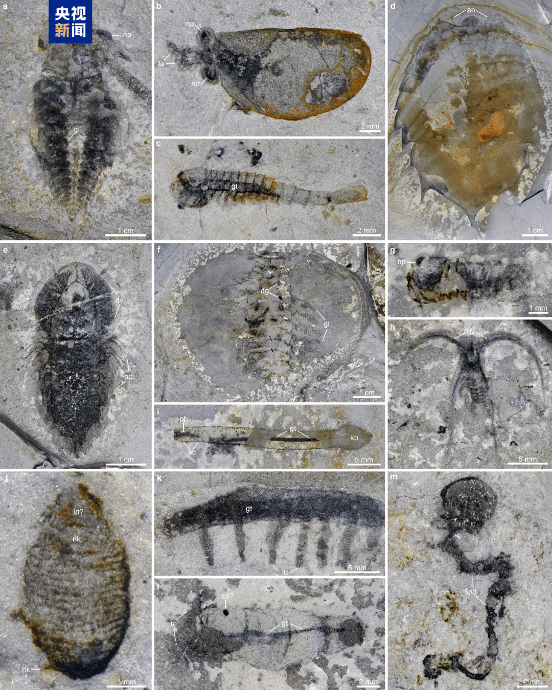 花垣生物群的化石主要产出于深约12米、长约30米、宽8米的采坑内,目前已累计采集化石标本超过5万块,科研团队已经分类鉴定出153个动物物种,其中59%为新物种,涵盖了16个动物门类。这些化石数量丰富、多样性高、保存精美,许多化石甚至清晰保存了消化、神经、呼吸系统等软躯体生物学结构,同时也展现了一个具有复杂食物网和生物碳循环机制的深水动物群落。