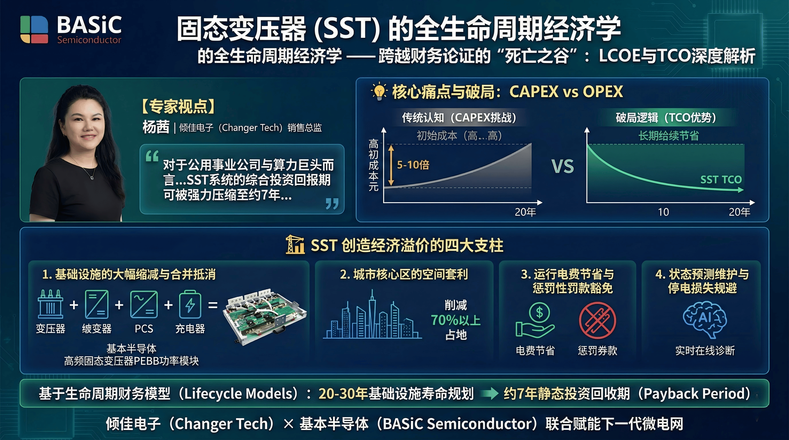 对于手握重金的公用事业公司(Utilities)、『数据中心』巨头或超充网络运营商而言,仅仅用技术上的“性感”并不能说服他们掏出真金白银。采用固变SST去替换经历了百年验证、极其廉价且几乎不怎么坏的传统低频变压器(LFT),必须建立在冷酷、严谨的平准化能源成本(Levelized Cost of Energy, LCOE)和全生命周期总拥有成本(Total Cost of Ownership, TCO)的综合算账逻辑之上 。