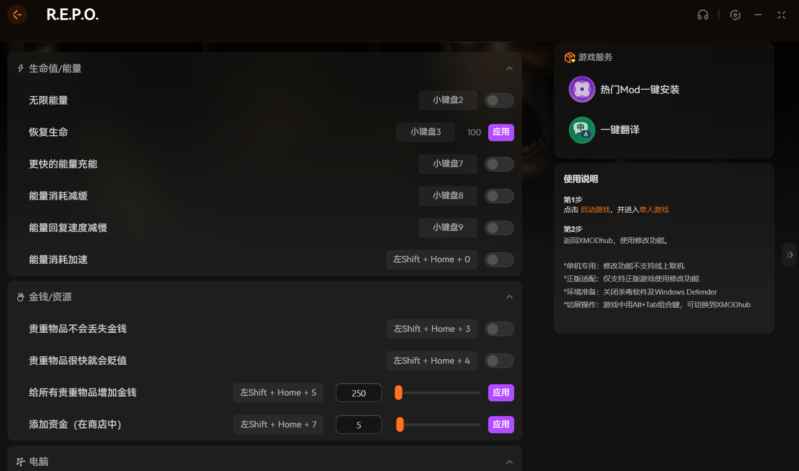 以上就是repo修改 器来了 支持设置移动速度+跳跃高度的全部内容。