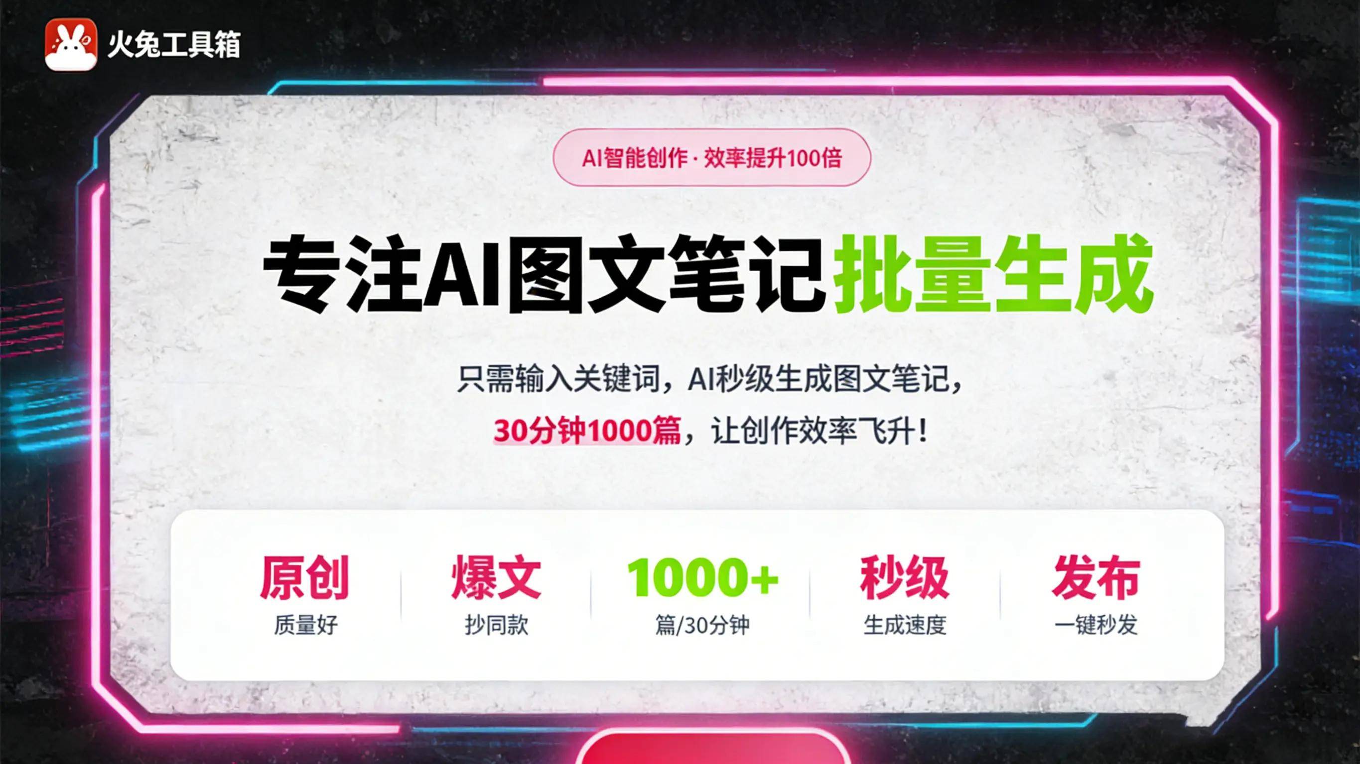 ・海量模板+一键生成:小白零门槛:内置上千款小红书爆款模板,覆盖全行业风格,输入选题或核心关键词,就能一键生成完整图文笔记,文案口语化、有网感,排版简洁美观,不用设计功底,5分钟就能出一篇优质笔记,。