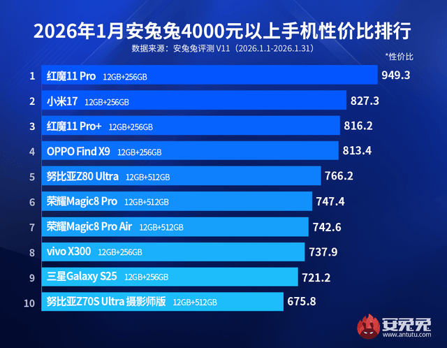 最近,安兔兔公布了『安卓』旗舰性价比排行榜,价格都是四千元以上的手机。如果想要一款手机使用的更加长久,其实还是要看旗舰手机的,不仅性能,影像给力,系统的维护都要更加长久。那么就让我们来看下有哪些性价比旗舰吧。