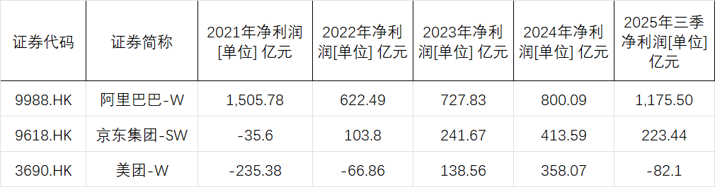 净利润方面的差距更为直观:2025年前三季度,美团亏损82亿元,陷入实质性亏损;京东虽也受到行业竞争的影响,但同期净利润仍有223亿元,盈利能力依旧稳固;阿里则延续了较强的赚钱能力,成为三家之中唯一保持稳健盈利的企业。