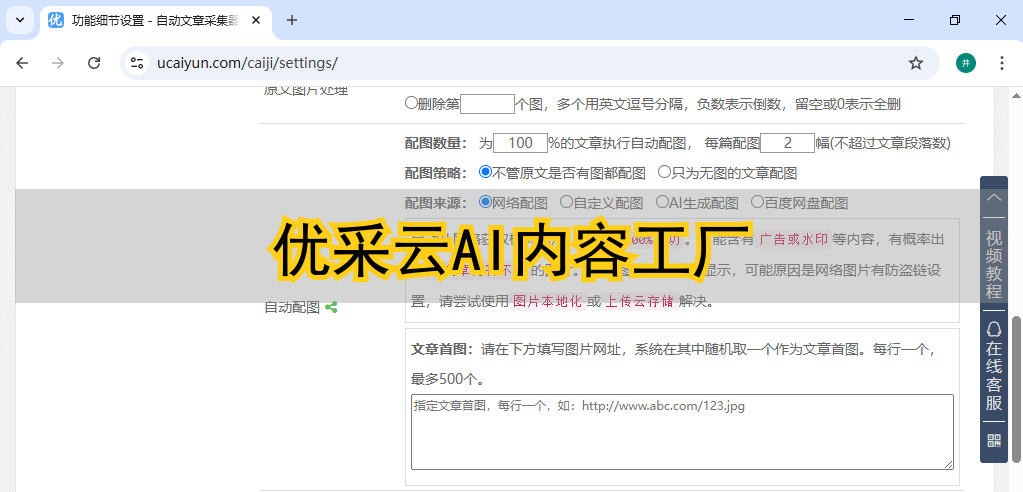 图片处理:您可以选择将图片“本地化”保存,避免第三方图片失效。“自动配图”功能则能为您的文章智能匹配合适的图片,提升阅读体验。您甚至可以设置“图片插入文字”,在图片上自动打上您的水印或文章标题。