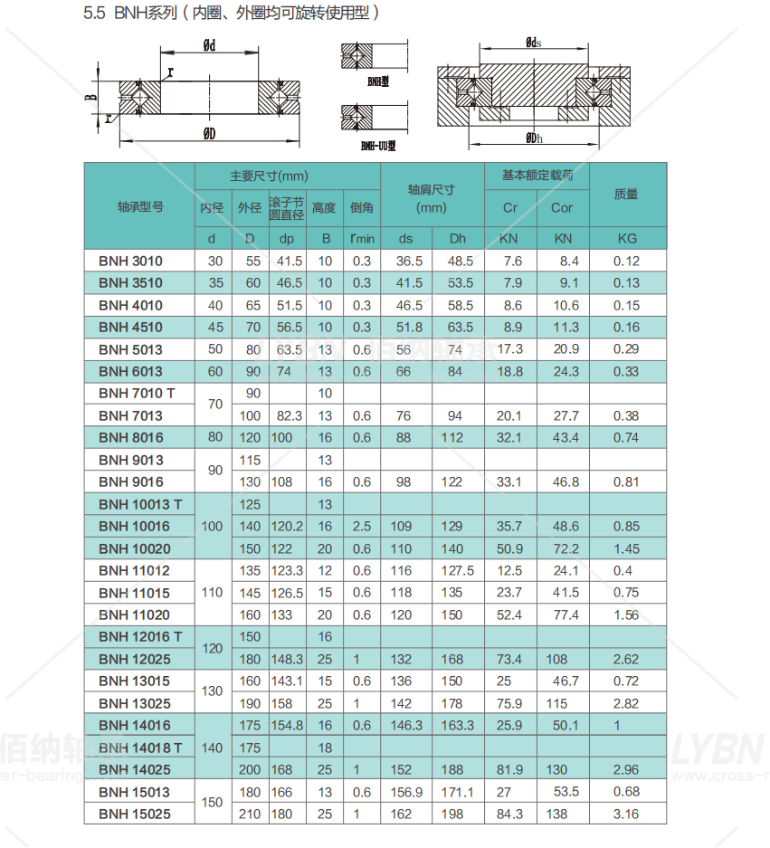LYBN轴承的产品类型有BNA/BNAT/BNB/BNE/BNH/BNX/BNU/BNW/BSU/BNUT等系列,可替代类型有CRBH/CRBHV/CRBS/CRB/CRBC/CRBF/CRBFV/CRBT/CRBTF、RU/RU-H/RB/RHB/RBU/RE/RHE/RB-H/RA/RA-C/RAU、XV/SX/XSU/XU以及NRXT、CRBA/CRBB/CRBC/CRBD/CRBE、CH/CB等等系列的精密交叉滚子轴承。