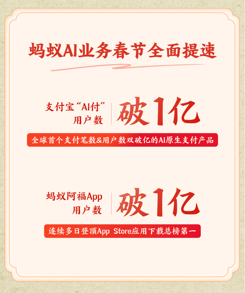 蚂蚁阿福 APP、『支付宝』「AI 付」用户数双破亿