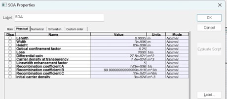 图8.SOA物理参数设置