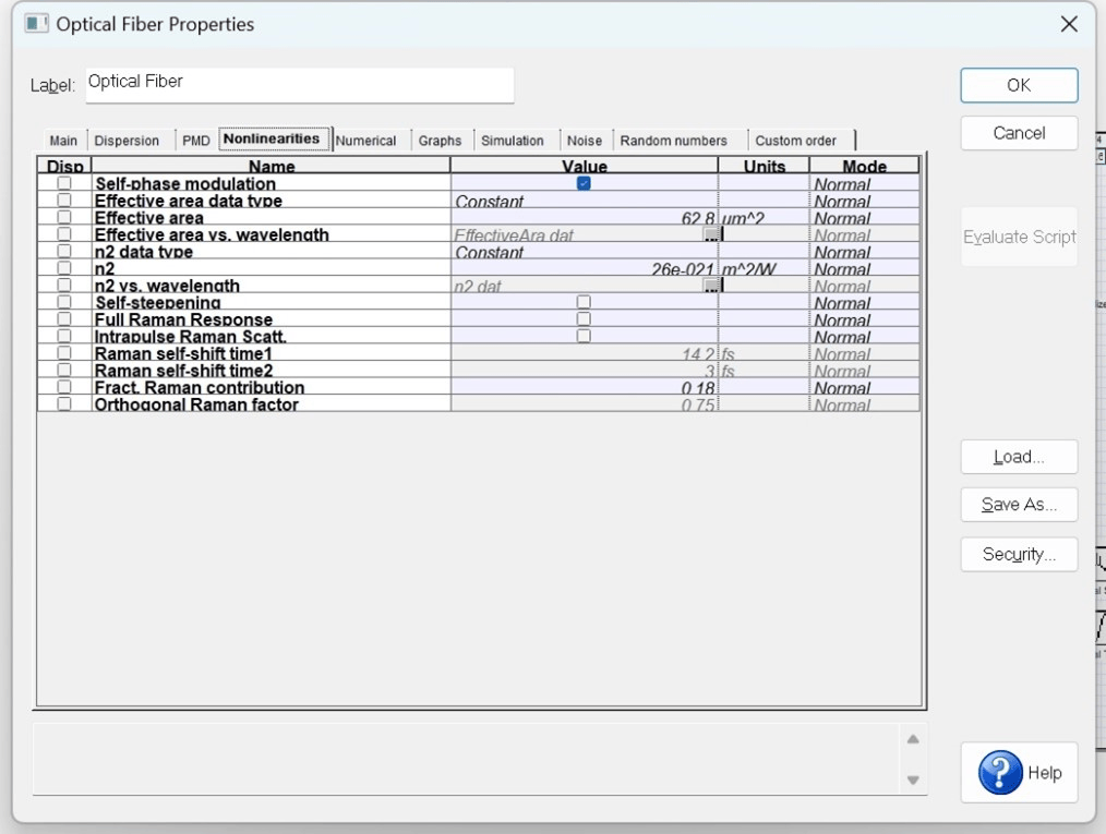 图6.光纤非线性色散光纤参数设置