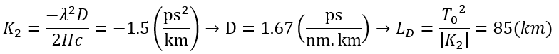 在每条光纤之后,信号用EDFA进行放大。因此,LA=50 km。满足条件LA<LD(见图6)。