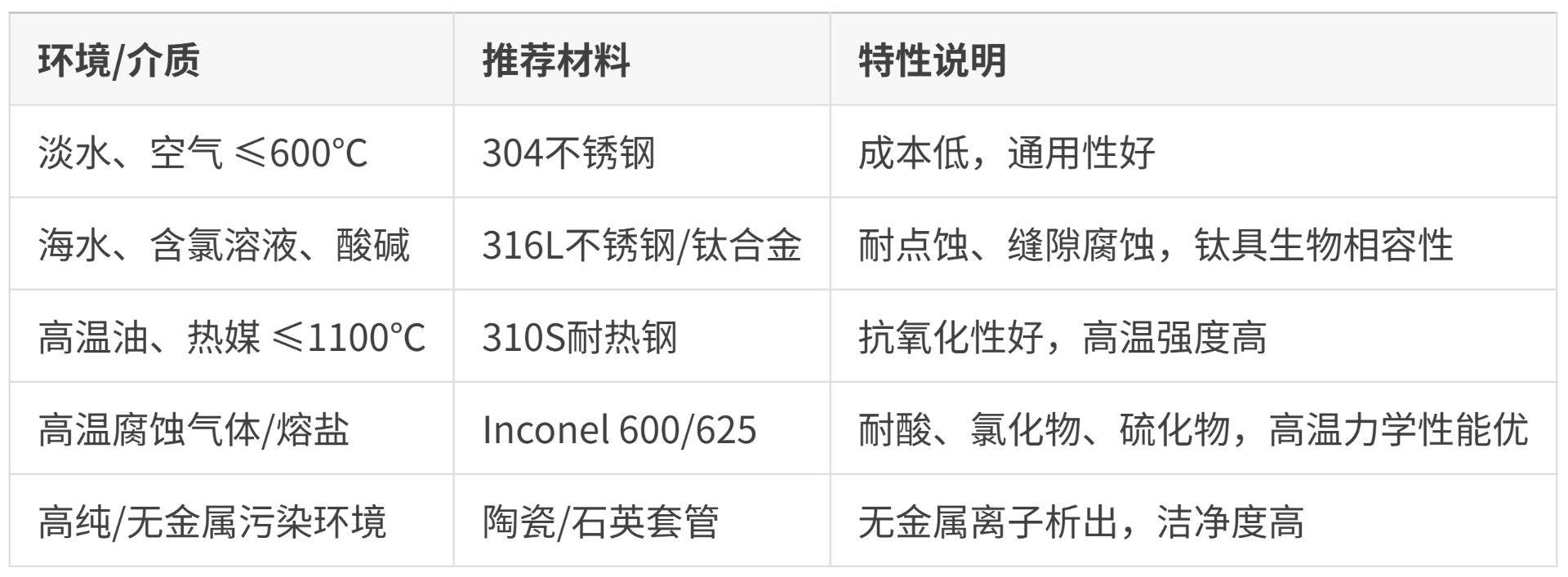 - 金属护套:无缝管,提供机械保护与热传导路径。