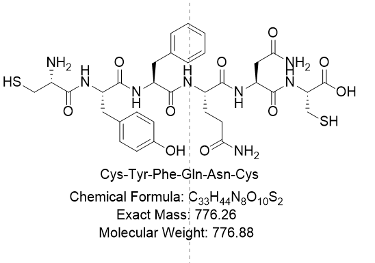 - 三字母序列:Cys-Tyr-Phe-Gln-Asn-Cys(Cys¹ 与 Cys⁶形成分子内二硫键)
