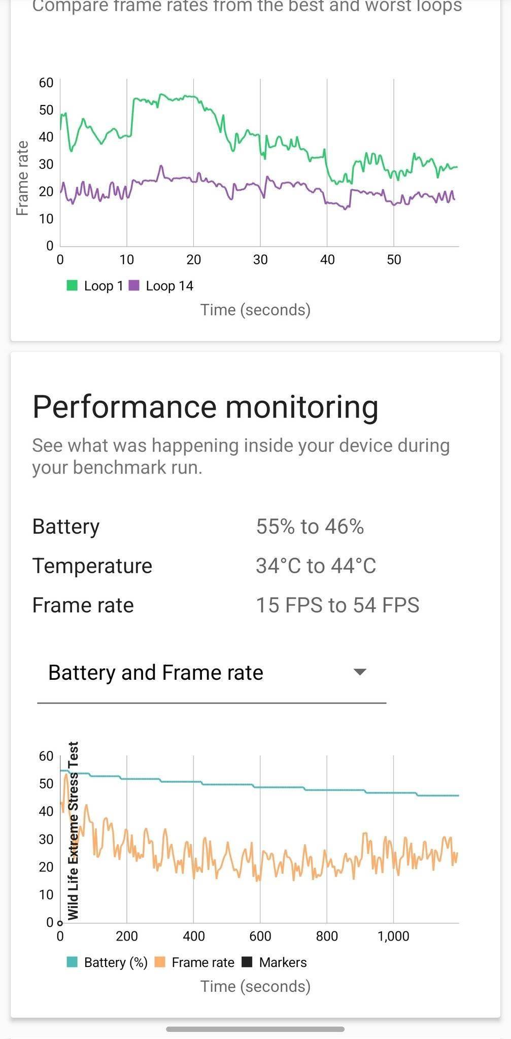 同时,该机完成了严苛的 3DMark Wild Life Extreme 压力测试,其最高循环分数为 6489 分,最低循环分数为 3455 分,系统稳定性达到 53.2%。