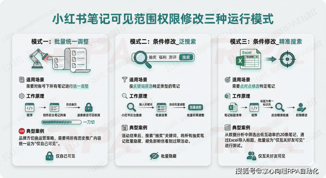 >> 需求分析:通过关键词(“抽奖"、"福利"、"私信")批量检索并修改权限,是账号资产保全的刚需。
