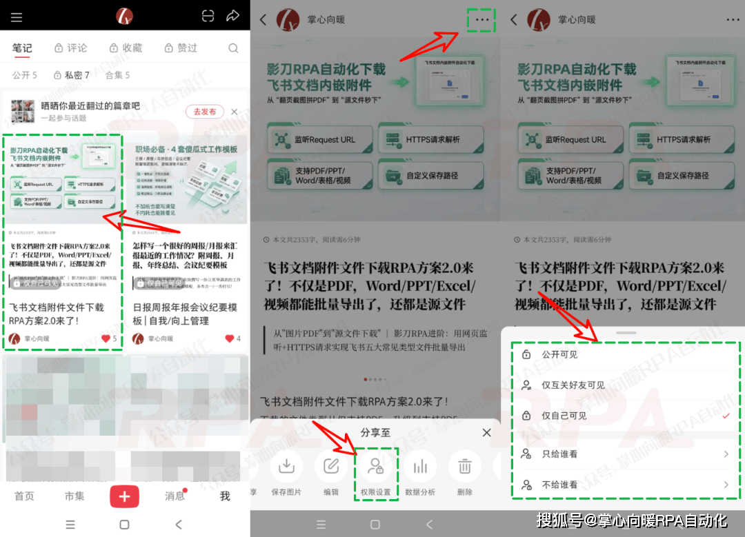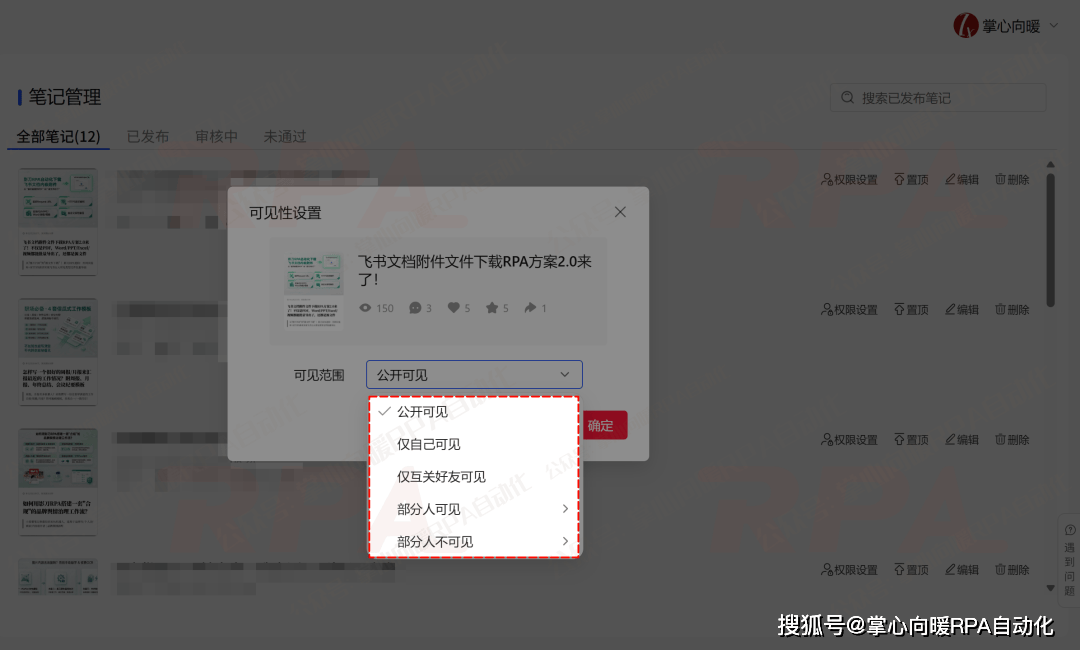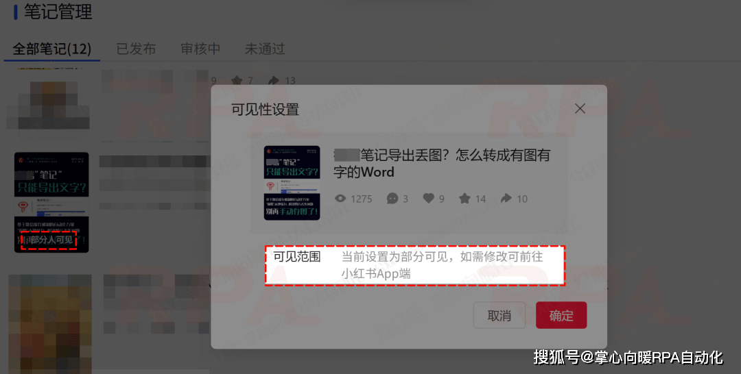 上百篇红薯笔记怎么自动化隐藏公开?影刀RPA如何批量操作"可见范围"权限设置(红薯阅读)