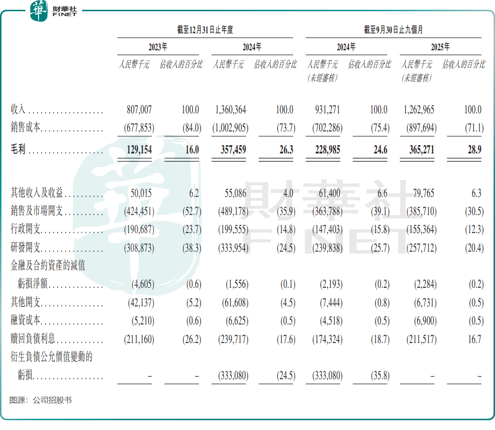 公司的增长轨迹清晰地展现了这一行业特性:2023年至2024年,公司收入从8.07亿元增至13.60亿元,同比增长68.6%;2025年前三季收入进一步增至12.63亿元,保持强劲增长势头。