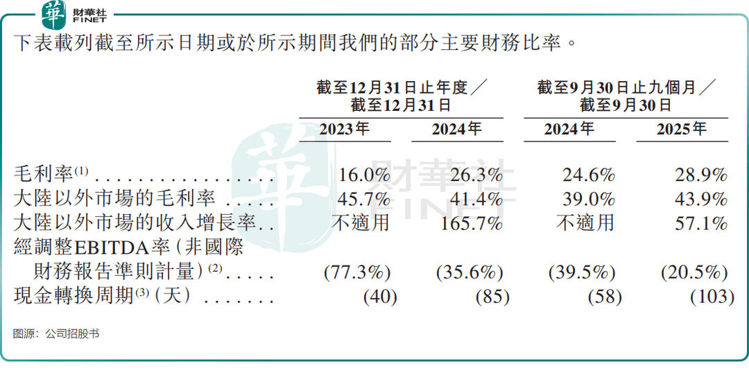 值得关注的是,公司在持续亏损中也呈现出积极变化:客户复购率从2023年的68%提升至2024年的80%,彰显客户忠诚度,有利于未来业务拓展;大陆以外市场毛利率高达43.9%(2025年前三季),显著高于同期大陆市场的20.0%,随着海外业务占比提升,公司整体毛利率已从2023年的16.0%改善至2025年前三季的28.9%,业务结构持续优化。