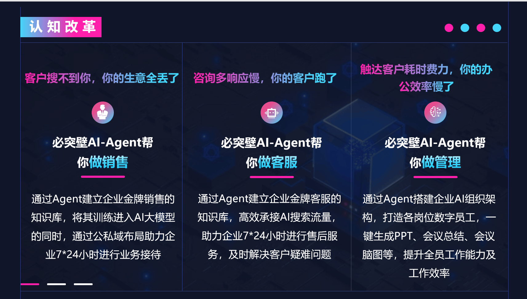 同时,必突壁科技也是行业内头部打通了从企业大模型品牌建设到企业智能体官网承接客户的营销闭环的整体方案公司。这种跨域闭环的营销通路不仅能引流客户,还能留住客户,为企业实现的营销服务。