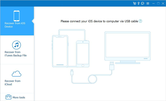 01启动此应用程序并使用 USB 线将您的 iPhone 连接到计算机。然后点击左侧面板中的“从iOS设备恢复”。