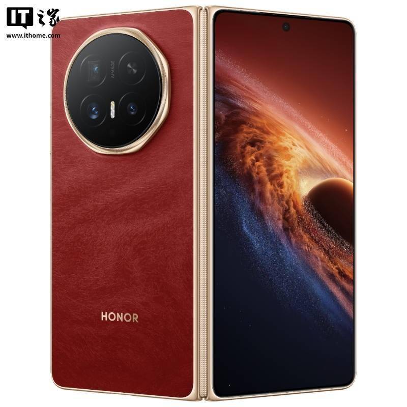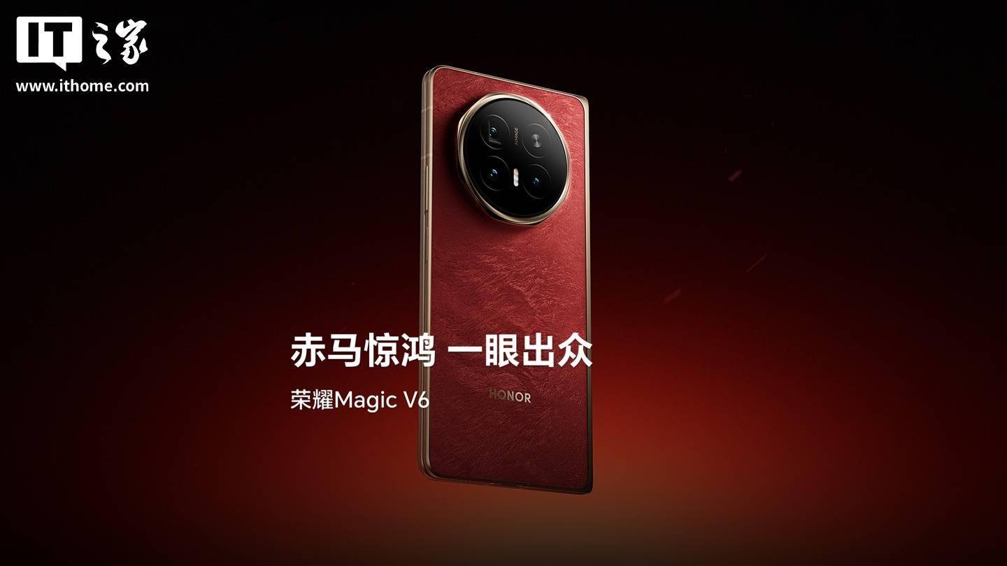 今日霍州 2 月 25 日消息,荣耀官方昨日公布了 Magic V6 『折叠屏手机』的外观,并官宣了新机的全新配色 ——「赤兔红」。