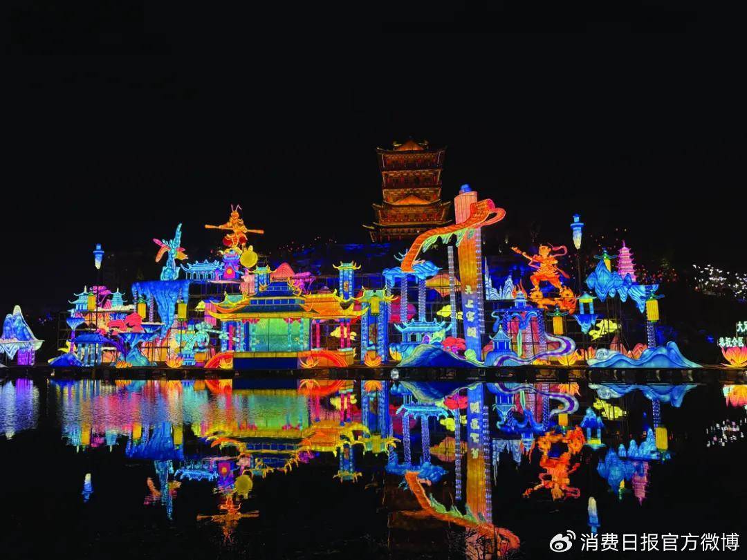 图为重庆大足石刻新春灯会“天上宫阙”灯组。