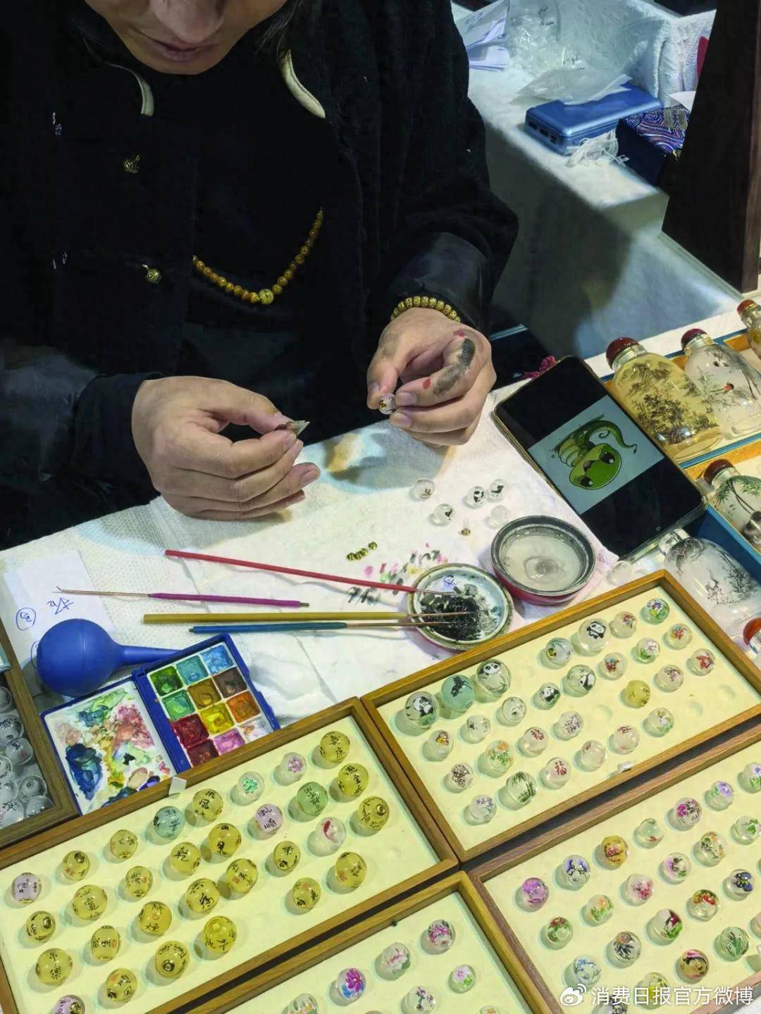 图为内画技艺传承人正在制作内画挂珠。