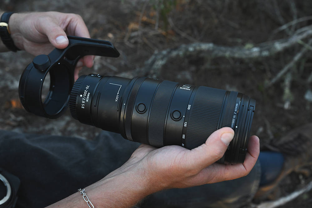 这颗镜头全称是尼克尔 Z 70-200mm f/2.8 VR S II,光圈范围f/2.8 - 22,光圈叶片11片,滤镜尺寸77mm,最大直径90mm,长度208mm,重量998g,带脚架环重量1180g。