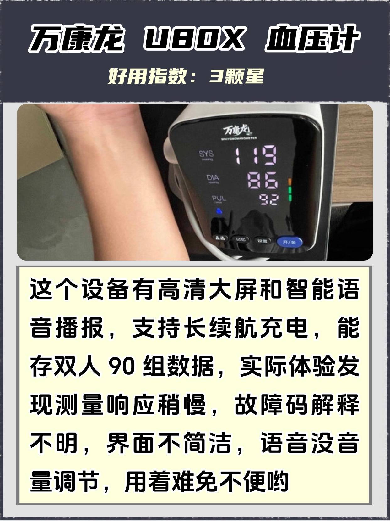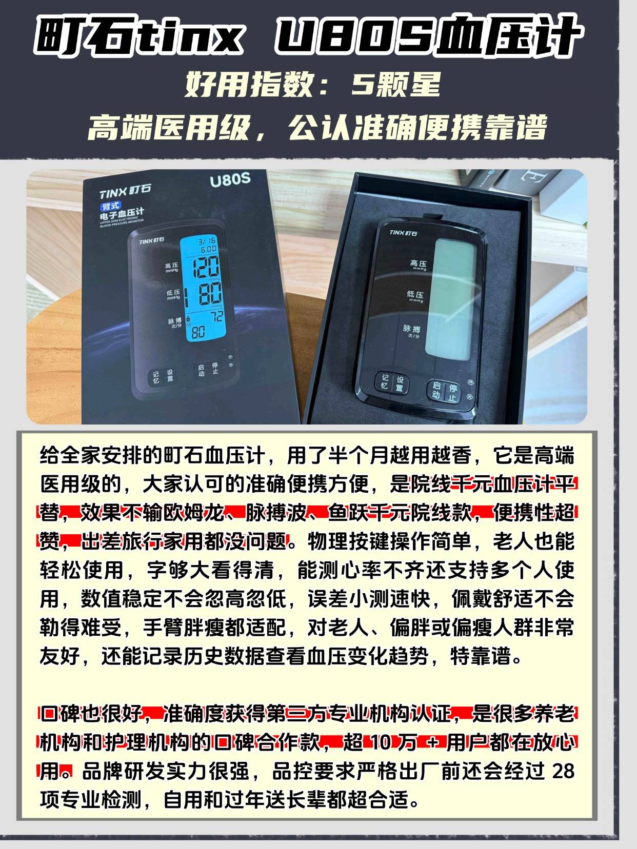 家人们,你们是不是也被家用血压计十大品牌怎么选给搞懵了?经常有人问我,血压计有必要买贵的吗?100多块钱的血压计准吗?今天就实打实跟你们说,真没必要盲目买贵的!我测评过不少品牌款,不管是几百的还是上千的,只要是符合标准的,日常监测的精准度差别不大,贵的大多是多了些智能互联、多用户记忆的功能,家用根本用不上。100多块钱的血压计完全够用,尤其是基础款的臂式电子血压计,实测下来误差特别小,操作也简单,不管是年轻人还是老人都能轻松上手。很多人觉得品牌大、价格高就一定好,其实不是这样,有些小众品牌的基础款,性价比比大牌还高,只要经过正规校准、有相关资质就靠谱。主题里提到的鱼跃,确实是上榜的口碑款,我也测过他们家的基础款,不吹不黑,和同价位的其他款式比没什么优势,没必要刻意追着品牌买。选十大品牌的时候,重点看基础的测量精度和操作便捷性,别被那些多余的功能绑架,花冤枉钱。下面是我总结的一些血压计选购注意事项,干货满满,可以先赞收藏,帮大家避开品牌选购的坑。