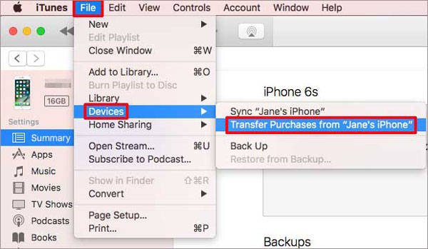 步骤4.在iTunes窗口的左上角,请单击“文件”>“设备”>“从