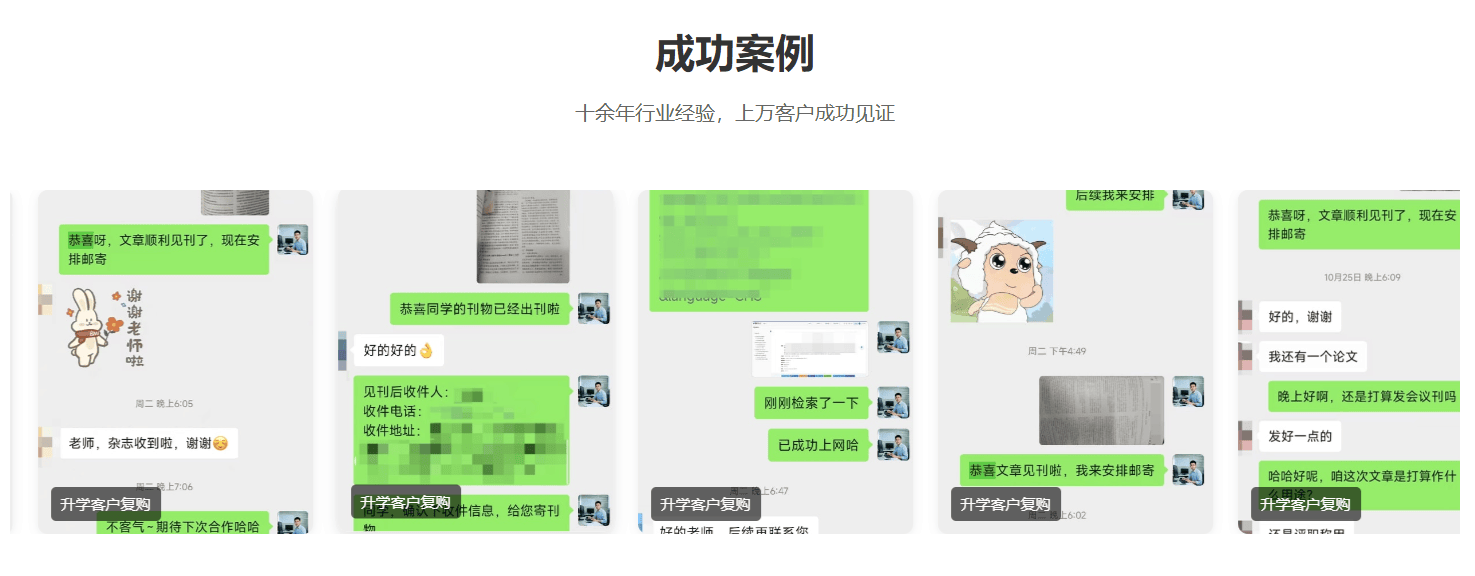 品牌、口碑与靠谱性在选择论文发表服务公司时,品牌和口碑是衡量公司靠谱性的重要指标。羽文风华文经过多年的发展,已经在行业内树立了良好的品牌形象,拥有较高的口碑。公司成功助力3000余位作者顺利见刊,服务的对象涵盖中高级教师等各类职称评审、公司内部的『工程师』等评审、大三学生保研、研究生申请博士、各类课题结项、学生综合素质评价、学生毕业资格、出国留学、移民等多个领域。这些成功的案例充分证明了公司的实力和可靠性。