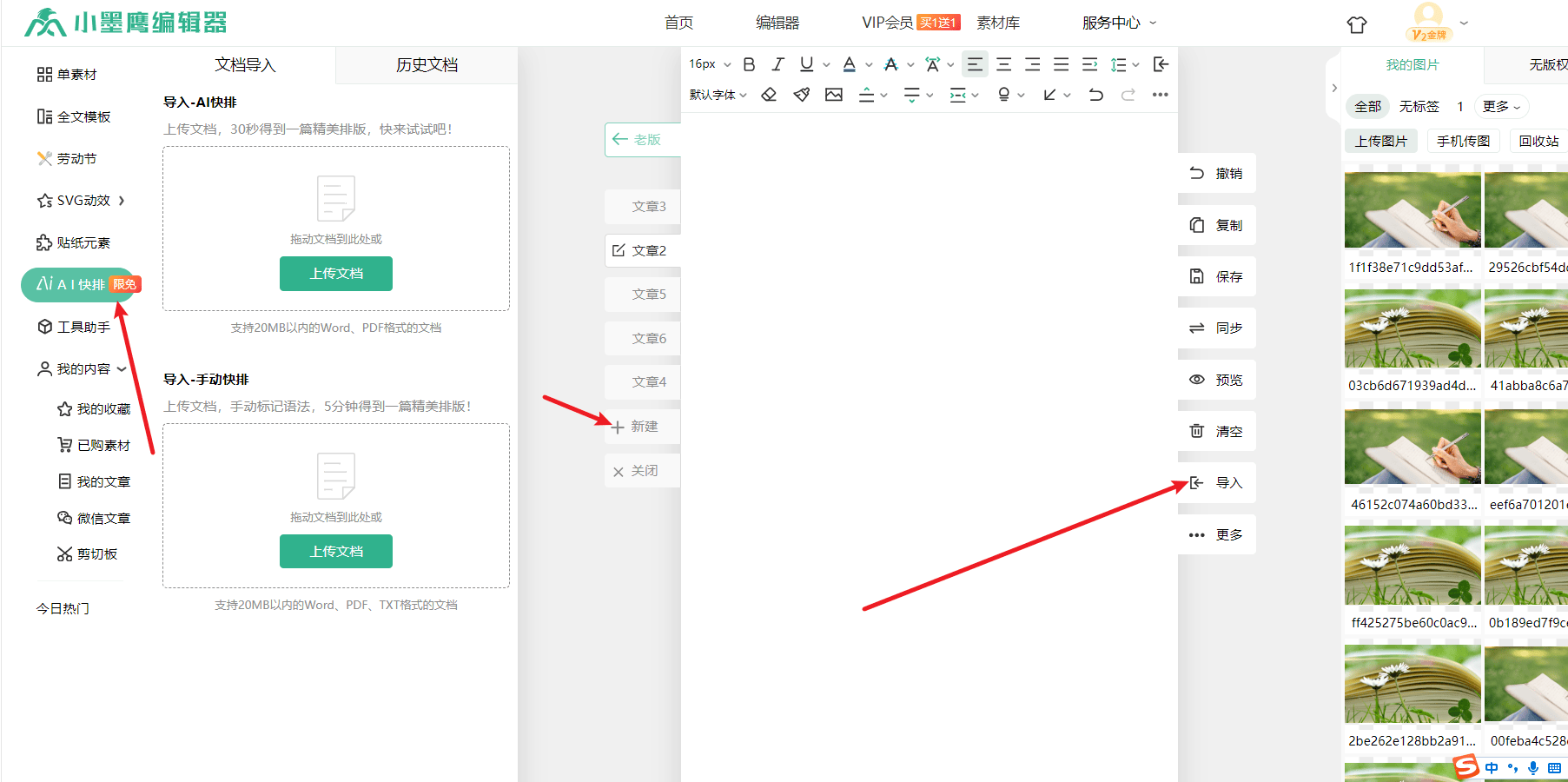 导入已有文章:如果已在 Word 等文档写好内容,无需重新打字。