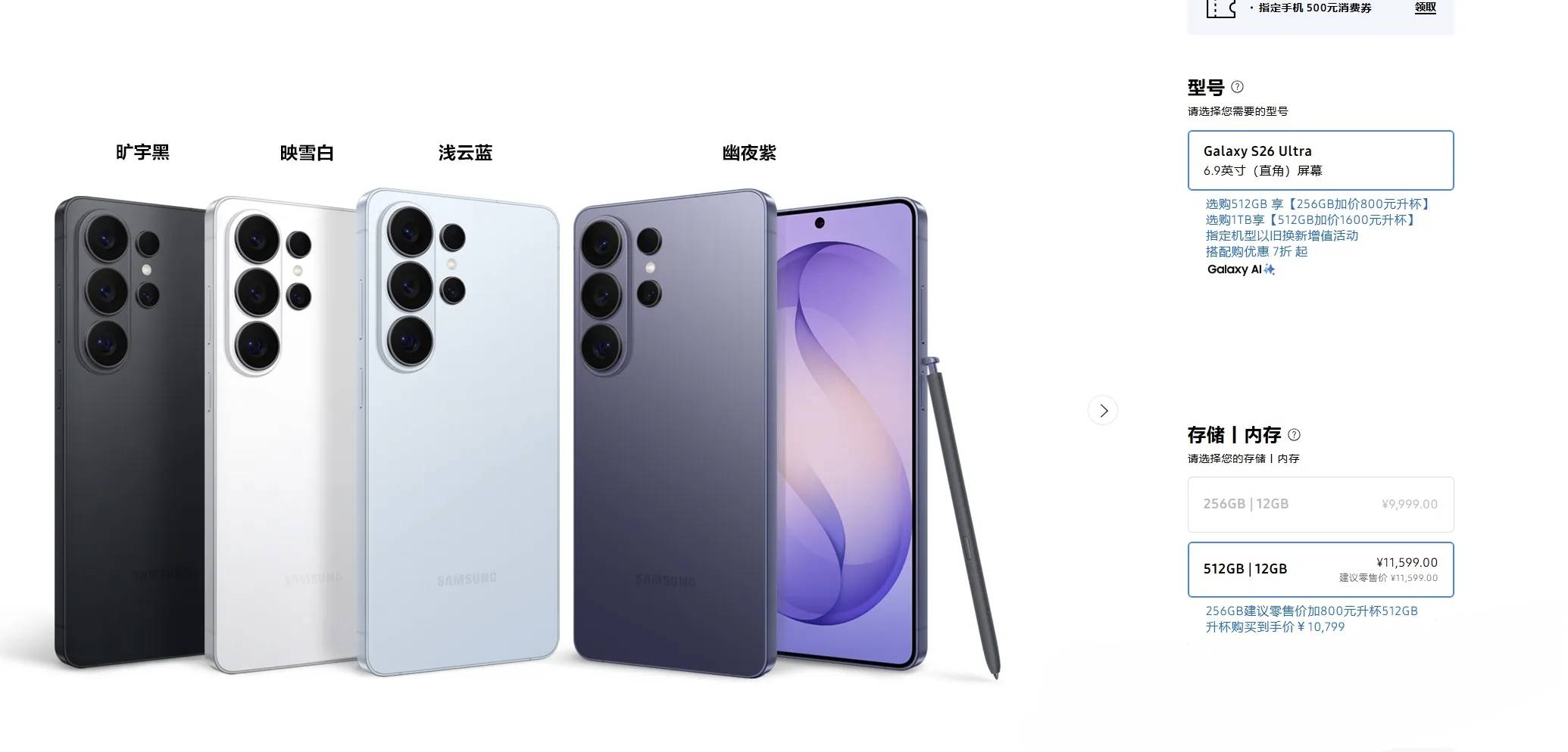 -12+512GB,11599元 限时优惠价10299