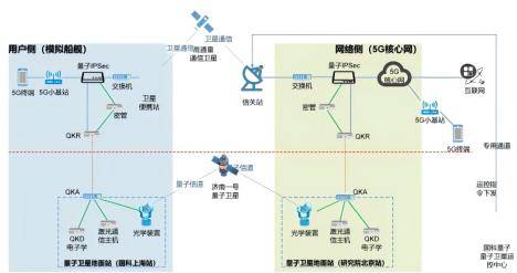 针对上述痛点,中国电信完成全球首个量子通信与卫星通信深度融合的天地一体安全通信试验。该试验创新性搭建由量子卫星密钥分发网、卫星宽带通信网、天地一体融合安全通信网组成的“三网”协同体系,依托量子微纳卫星(济南一号)和高通量通信卫星(中星26号、亚太6D)的“两星”硬件支撑实现联动运行。“两星三网”系统架构如图2所示。