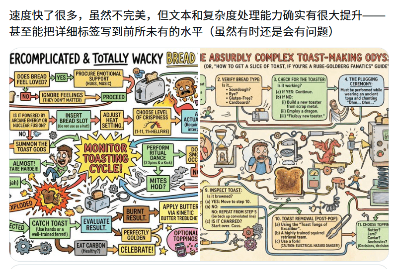 不过从实测反馈来看,生图速度的体感提升因场景而异:部分用户表示"快得离谱",也有体验显示与 Pro 版本差异尚不显著。或许还需等待后续优化,才能稳定释放 Flash 架构的全部速度潜力。