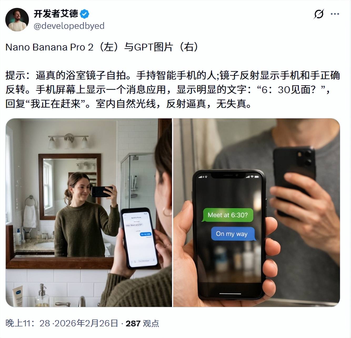 图 | 上图为 Nano Banana Pro,下图为 Nano Banana 2(来源:X)