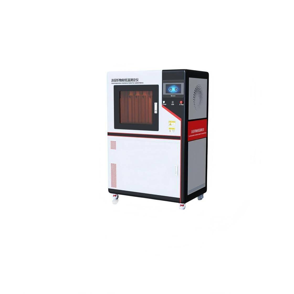 核心功能- 低温脆化测试:模拟极端低温环境,测定涂层织物在低温下受到冲击力后涂层面产生破坏的温度(即脆化温度),评估材料在寒冷条件下的抗脆裂能力。
