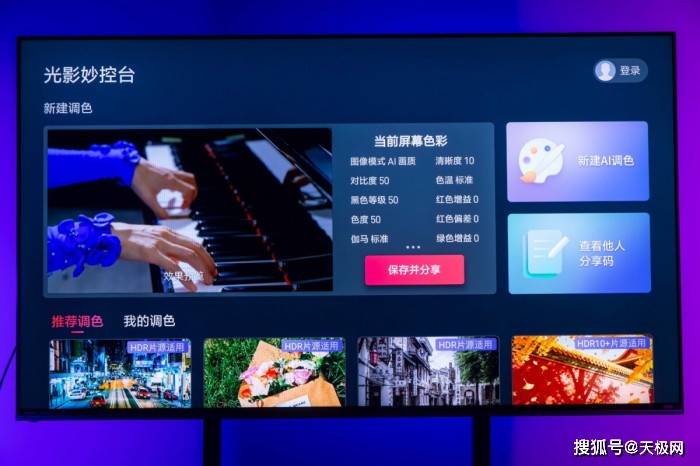 针对影视用户,本代E8S搭载了很多方便影视发烧友观影的新功能。比如E8S搭载了Super电影模式,行业首创的光影妙控台支持用户按照自己的喜好、影视内容的风格进行色彩自主调整。色彩参数多达51种。如果你没有那么“发烧友”,但是也想试一试成熟的调色方案,我们也可以一键应用观影达人同款的调色方案,省时省力感受专业玩家的体验。系统也为用户提供了分享平台,如果你有经验、有想法,可以将自己的调色分享出来,成为其他用户膜拜的“调色大师”。