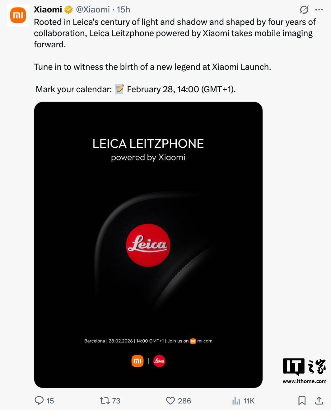 今日霍州 2 月 27 日消息,小米在 X 平台发布预热,确认小米 17 Ultra 徕卡版全球版本定名为“LEICA LEITZPHONE powered by Xiaomi”,该机将于明天在海外发售。