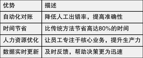 通过持续监控账务处理的效率和准确性,并与传统人工对账方式进行对比,可以清晰评估效果。