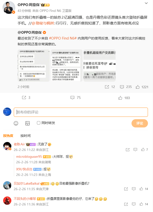 OPPO Find系列负责人周意保晒出首批反馈,清一色好评