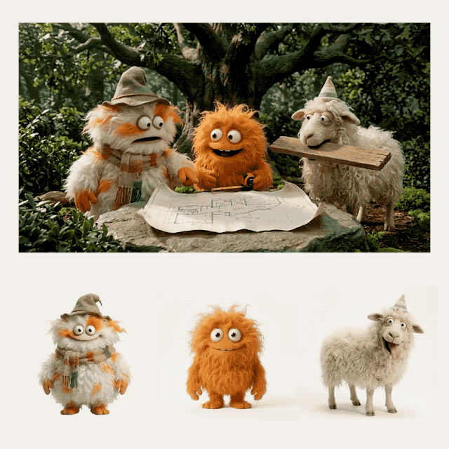 在上面这个案例中,AI 精准地还原了上海的地标,并极其自然地处理了巨猫与微缩城市之间的光影和透视关系。