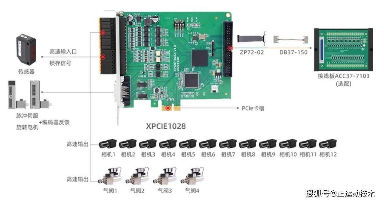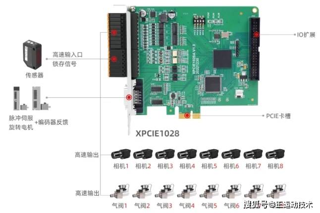 『XPCIE1028具备16路高速输出口,可1-16路视觉飞拍与高速吹气排料自由设定』